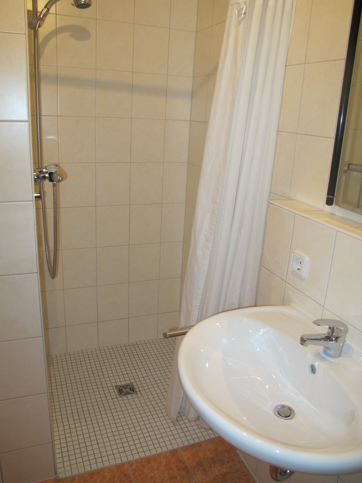 Bad: Dusche, Waschbecken, WC