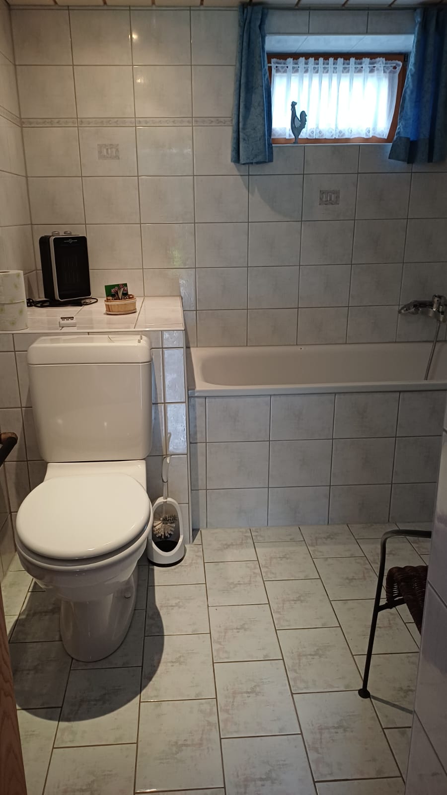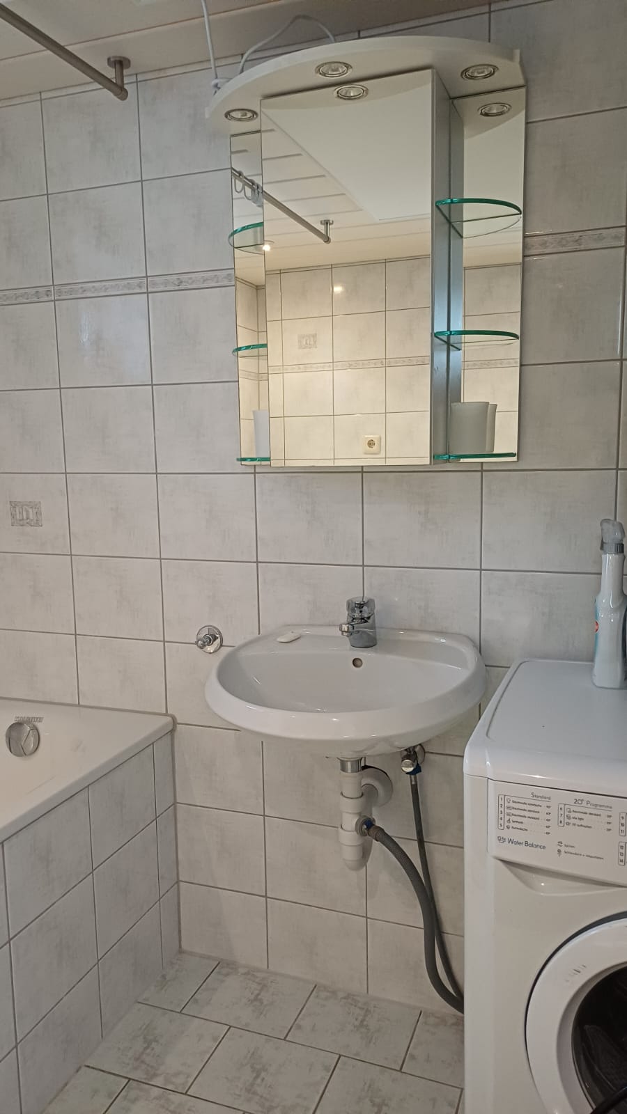 Bad: Badewanne mit Dusche, WC, Waschbecken, Fön, Waschmaschine