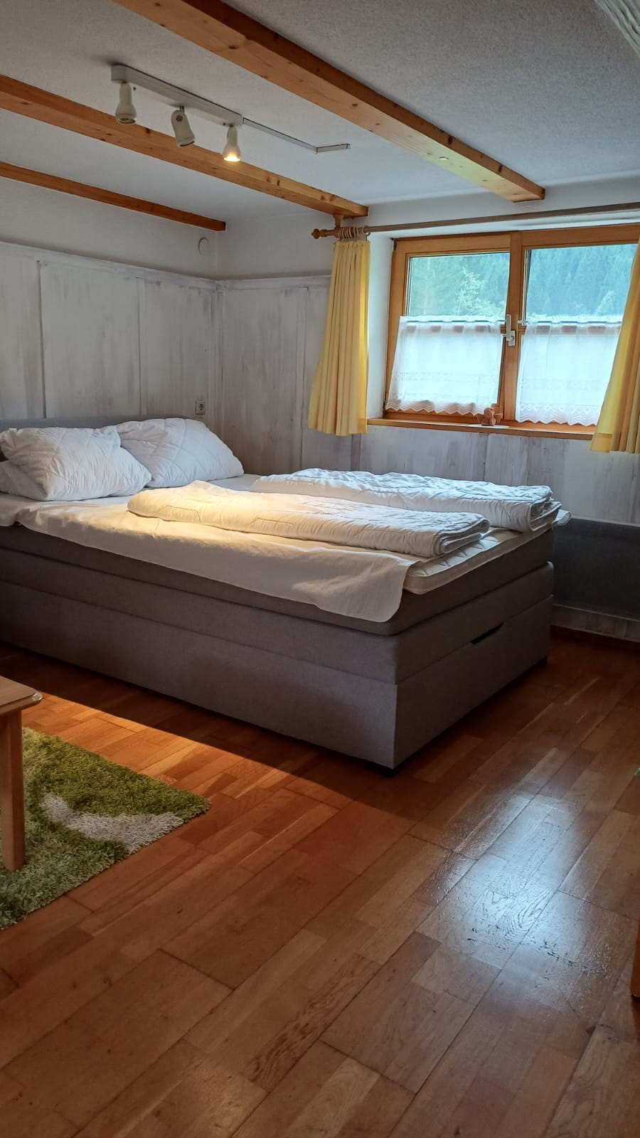 Es besteht aus einen kombinierten Wohn-/Schlafraum mit Küchenecke und einem Badezimmer. Die Beheizung erfolgt über einen gemütlichen Holzofen. Für das notwendige Brennholz wird eine Pauschale von 4,- € pro Tag erhoben (Gesamtpreis 49,- pro Übernachtung + Nebenkosten).