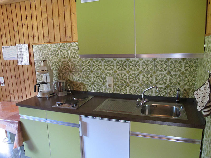 2 Platten Elektrokochstelle, Kühlschrank mit Gefrierfach, Kaffeemaschine, Geschirr, ...