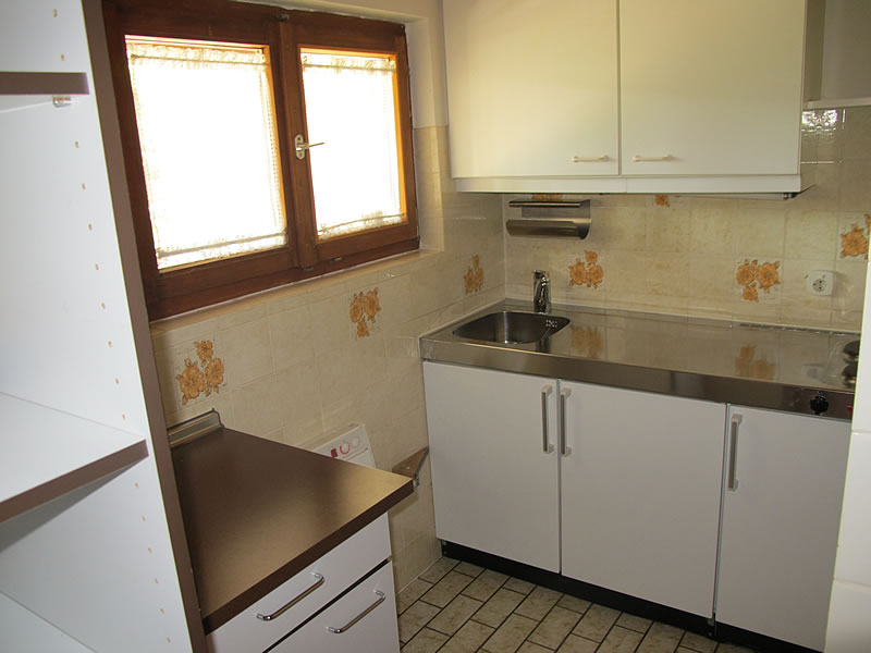 Sie besteht aus einem kombinierten Wohnraum mit Küchenzeile, 1 Schlafraum, einem Badezimmer und einem separaten WC.