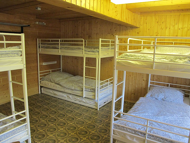Schlafraum: 3 Stockbetten, Kleiderschrank